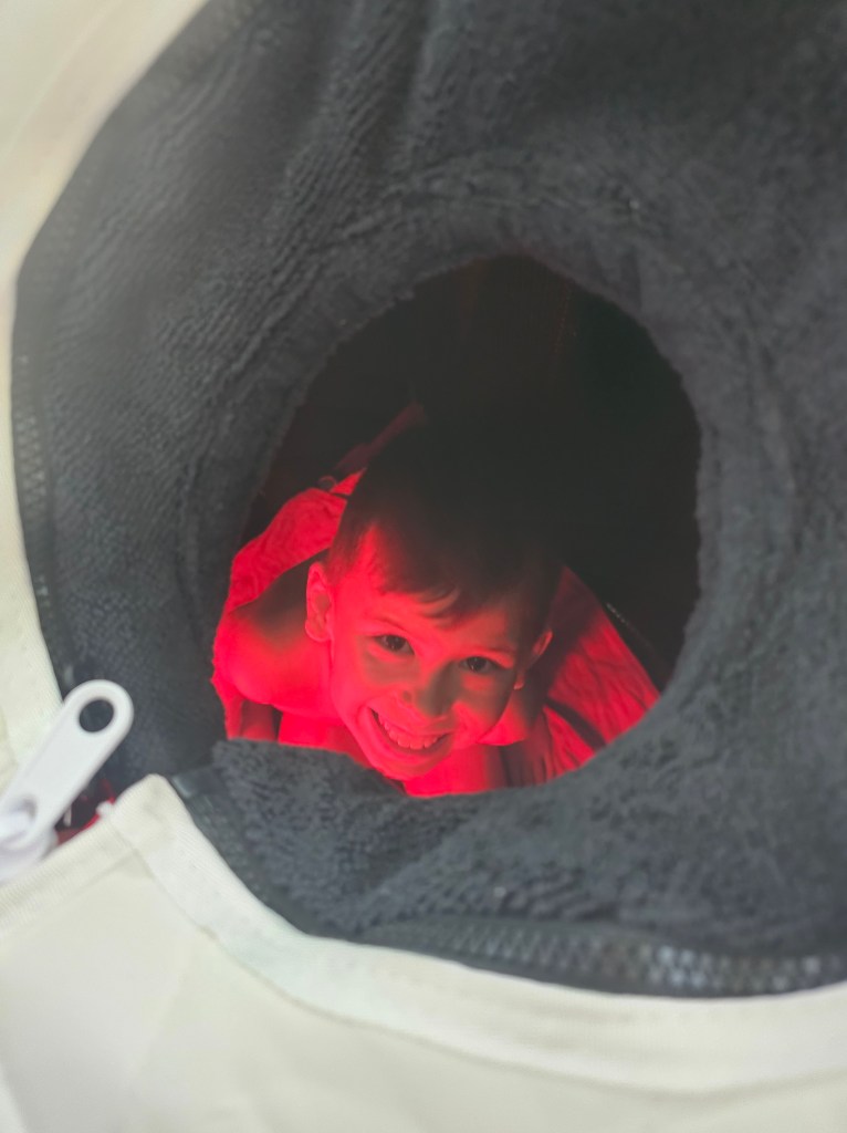 Besonders spannend: Die Sauna wird bei uns nicht nur von den Erwachsenen genutzt – auch Henry profitiert davon, bei seinem Schimmel-Detox. Anfangs war es ein Experiment, begleitet von einem sanften Detox-Protokoll, das ich für ihn erstellt habe. Ziel war es, die Entgiftung zu unterstützen, ohne den Körper zu überfordern.